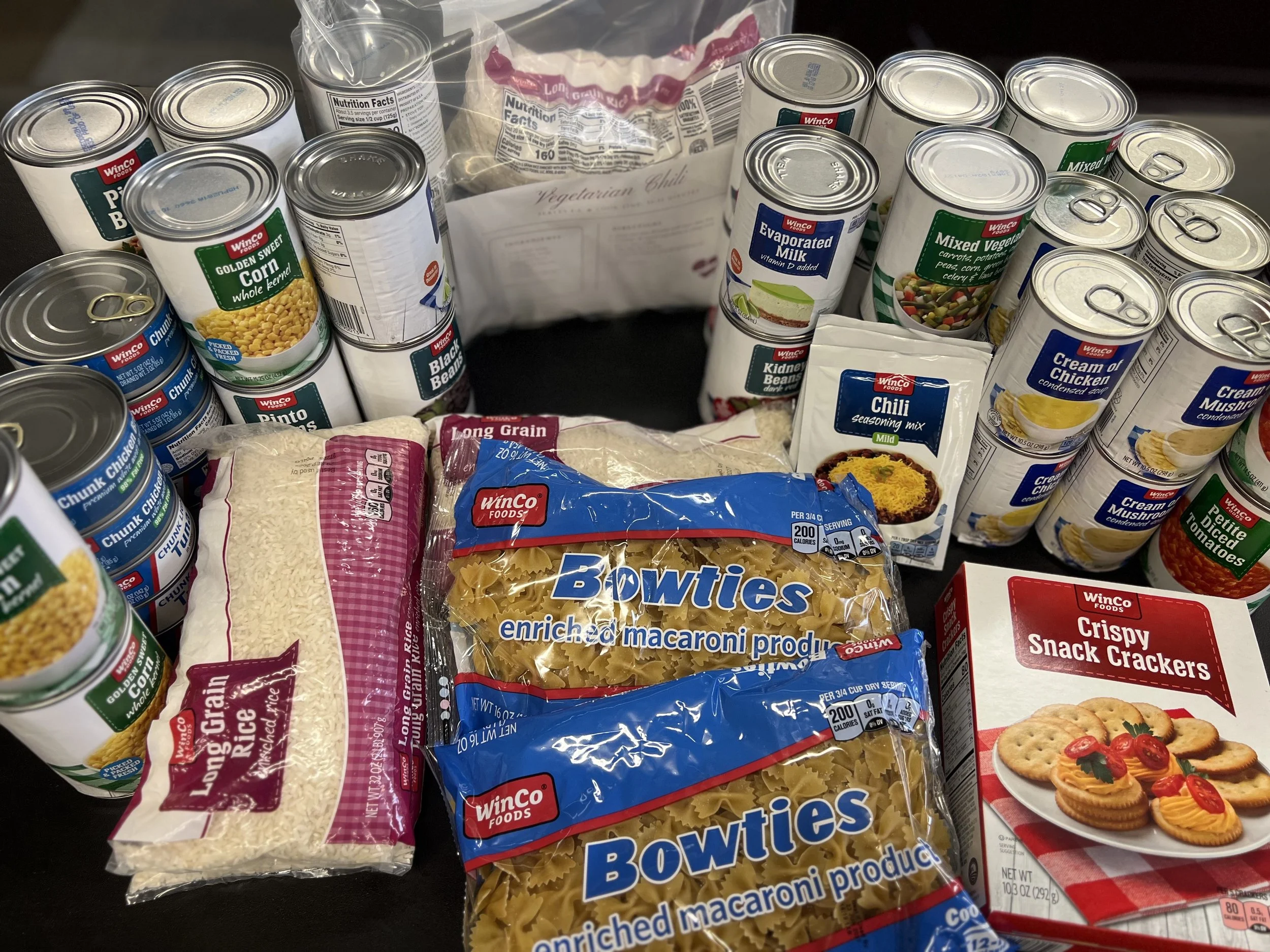 We’re collecting non-perishable items like canned beans, tuna, corn, tomatoes, rice, and pasta. See our grocery lists for more details.